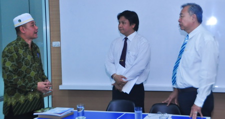 ผู้บริหารฝ่ายพัฒนาเศรษฐกิจและสังคม 5 จังหวัดชายแดนภาคใต้จากธนาคารอิสลามแห่งประเทศไทยเข้าพบอธิการบดีและผู้บริหารมหาวิทยาลัยหาดใหญ่ เพื่อหารือแนวทางพัฒนาศักยภาพนักศึกษาด้านธุรกิจ ณ อาคารบริการธุรกิจ มหาวิทยาลัยหาดใหญ่ วันที่ 28 มกราคม 2558