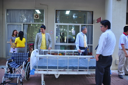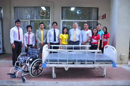รองอธิการบดี ฝ่ายพัฒนานักศึกษาและชุมชนสัมพันธ์ รับมอบเตียงนอน อเนกประสงค์และรถนั่งเข็น จากผู้มีจิตศรัทธาให้กับมหาวิทยาลัยหาดใหญ่ สำหรับห้องพยาบาล วันที่ 2 กุมภาพันธ์ 2558