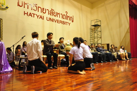 พิธีวันไหว้ครู ประจำปีการศึกษา 2558 ณ ศูนย์กีฬาและกิจการนักศึกษา มหาวิทยาลัยหาดใหญ่ วันที่ 17 กันยายน 2558