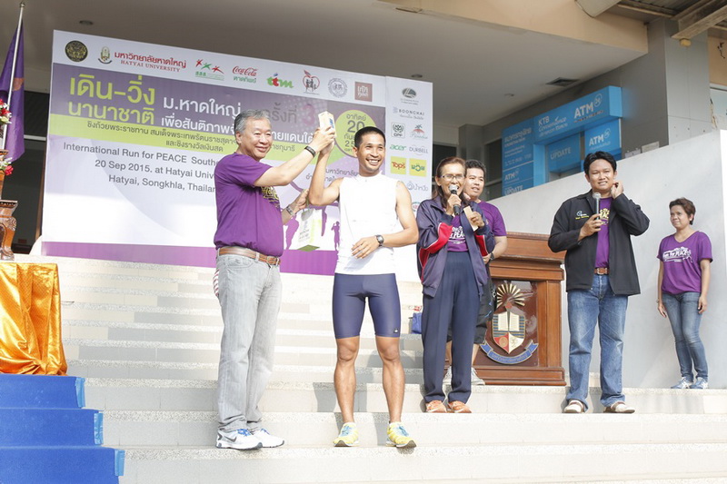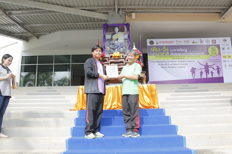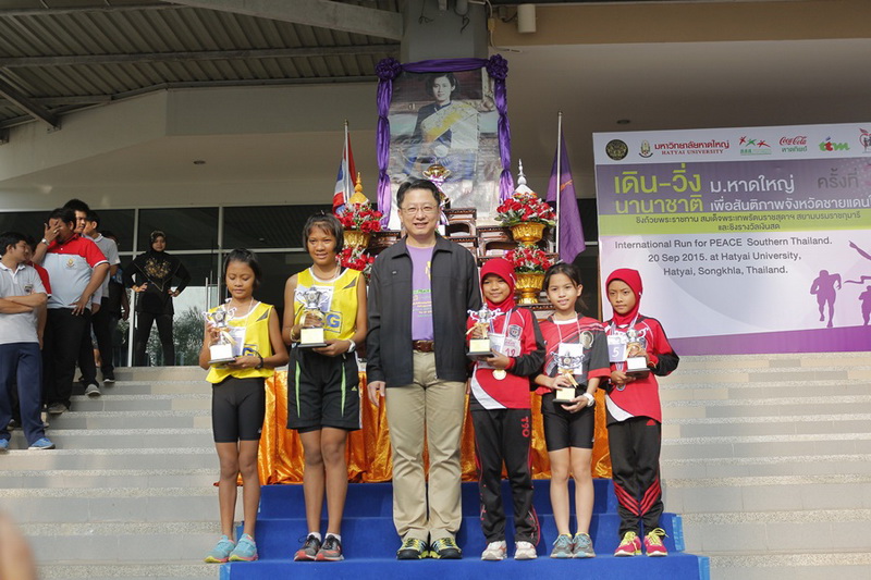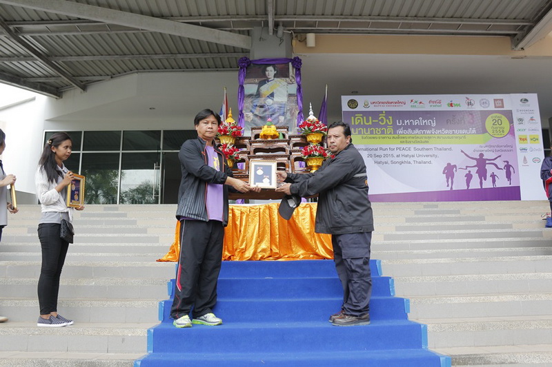 การแข่งขัน เดิน - วิ่ง นานาชาติ ม.หาดใหญ่เพื่อสันติภาพ จังหวัดชายแดนใต้ ครั้งที่ 3 ณ มหาวิทยาลัยหาดใหญ่ วันที่ 20 กันยายน 2558 รางวัลชนะเลิศ (Overall) ทั้งประเภทชายและหญิง พร้อมรับถ้วยรางวัลพระราชทานจากสมเด็จพระเทพรัตนราชสุดาฯ สยามบรมราชกุมารี ในปีนี้ได้แก่ ด.ญ.วรรณวิสา แสงทะรา จากจังหวัดนครศรีธรรมราช และนายอำนวย ต้องมิตร จากจังหวัดสงขลา |