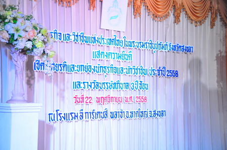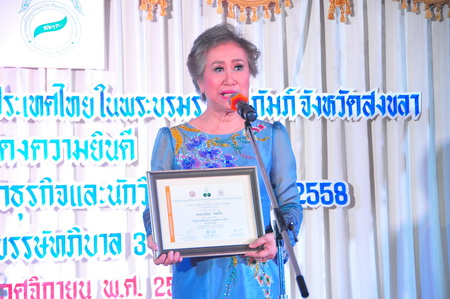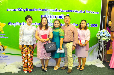 สมาคมสตรีธุรกิจและวิชาชีพแห่งเประเทศไทยในพระบรมราชนูปถัมภ์ จังหวัดสงขลา แสดงความยินดี เชิดชูเกียรติและยกย่องนักธุรกิจและนักวิชาชีพ ประจำปี 2558 และรางวัลบรรษัทภิบาล 3 ปีซ้อน โดยมีท่านอาจารย์ประณีต ดิษยะศริน เป็นกรรมการที่ปรึกษา ร่วมแสดงความยินดี วันที่ 22 พฤศจิกายน 2558 ณ โรงแรม ลี การ์เดนส์ พลาซ่า อ.หาดใหญ่ จ.สงขลา |
