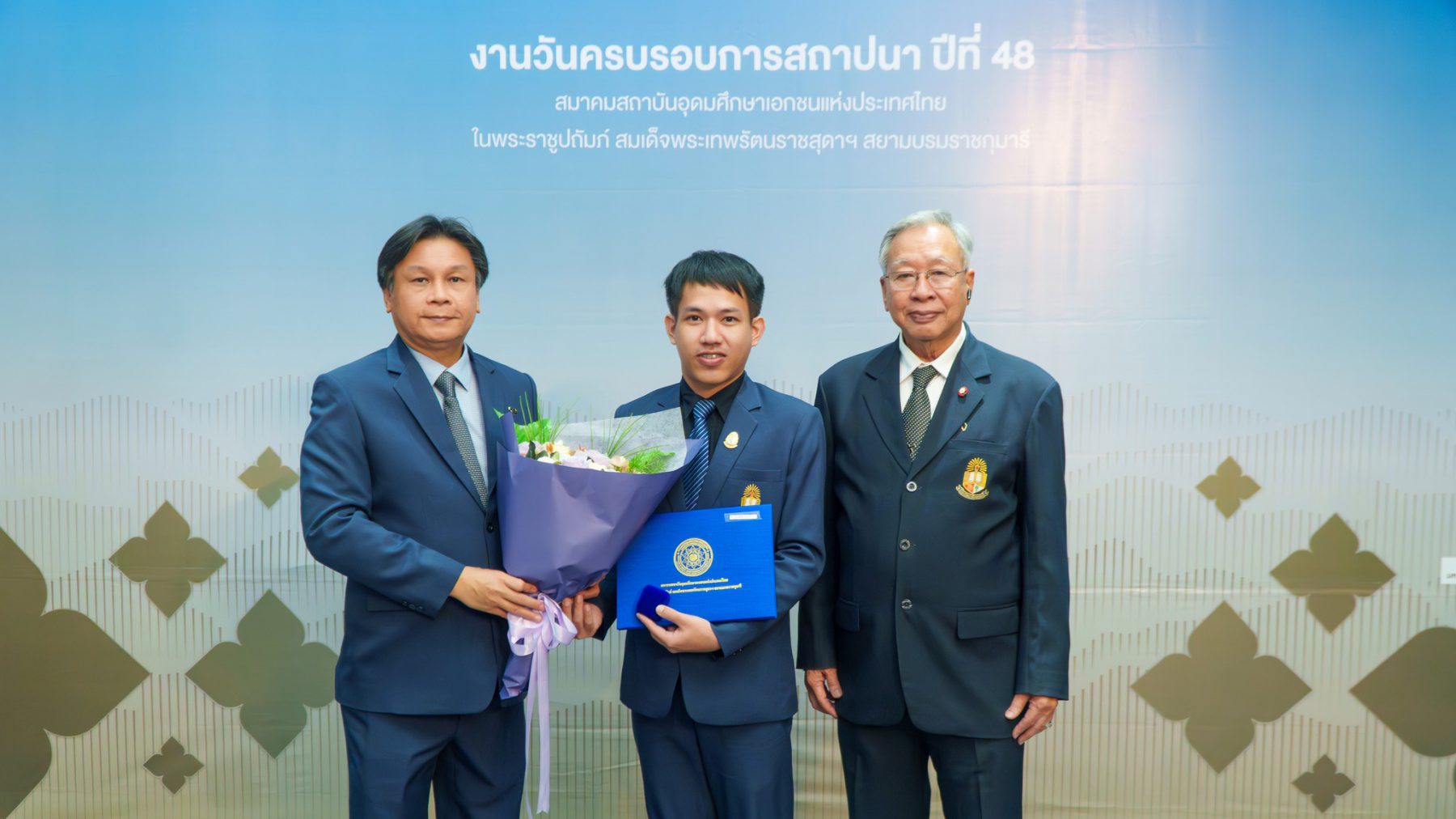 ศาสตราจารย์ ดร.ศุภชัย ปทุมนากุล ปลัดกระทรวงการอุดมศึกษา วิทยาศาสตร์ วิจัยและนวัตกรรม (อว.) กล่าวปาฐกถาเนื่องในโอกาสครบรอบ 48 ปี สสอท. พร้อมด้วย รองศาสตราจารย์ ดร.ธนวรรธน์ พลวิชัย นายกสมาคมสถาบันอุดมศึกษาเอกชนแห่งประเทศไทย (สสอท.) คณะกรรมการบริหารสมาคม อธิการบดี และผู้บริหารจากทุกสถาบัน เข้าร่วมแสดงความยินดีแก่ผู้ได้รับ “รางวัลบุคลากรและนักศึกษาดีเด่น พุทธศักราช 2568”