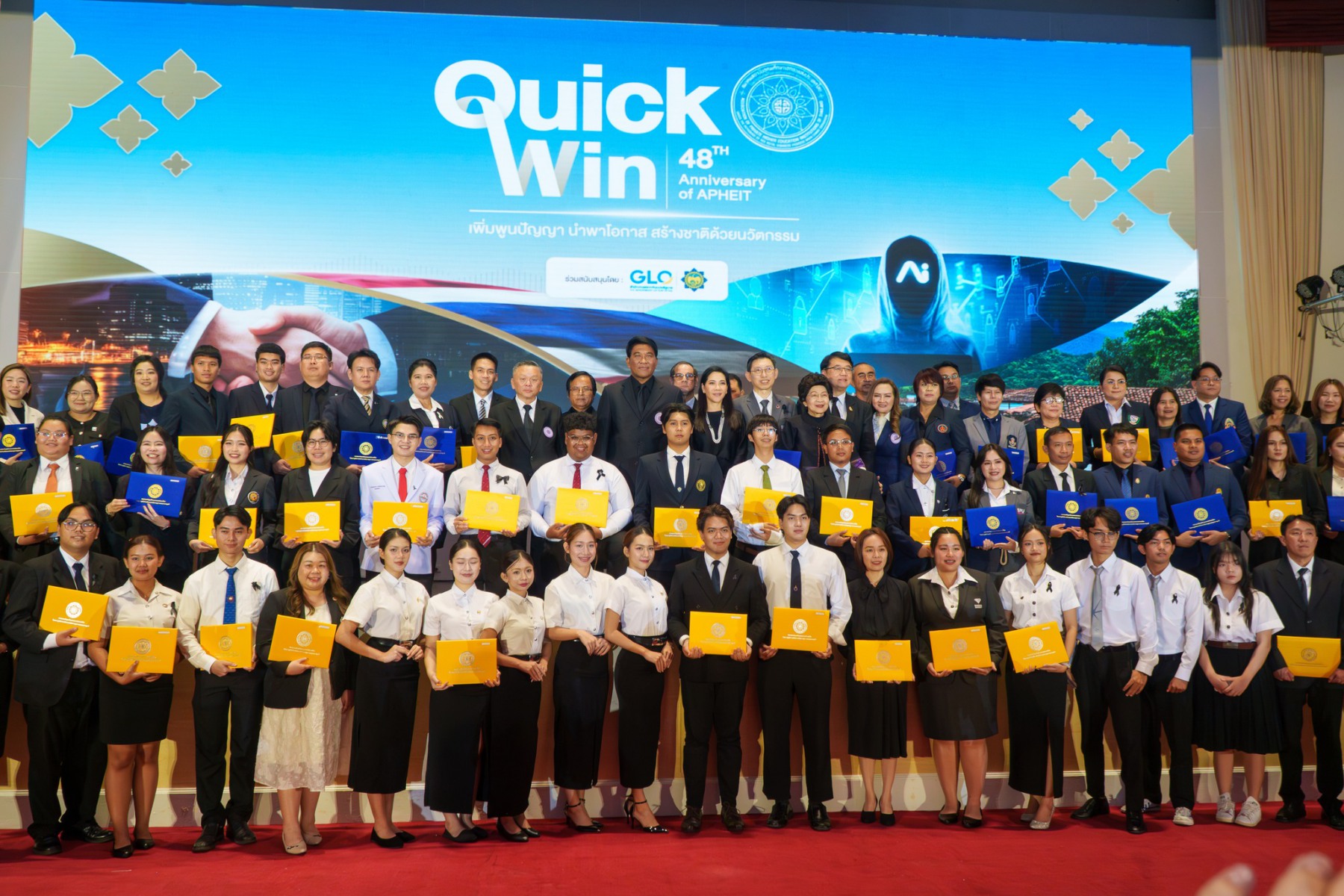 ผู้ช่วยศาสตราจารย์ ดร.วิทวัส ดิษยะศริน สัตยารักษ์ อธิการบดีมหาวิทยาลัยหาดใหญ่ พร้อมด้วย ดร.นิวัตน์ สวัสดิ์แก้ว รองอธิการบดีฝ่ายพัฒนานักศึกษาและชุมชนสัมพันธ์ และผู้แทนบุคลากรและนักศึกษา มหาวิทยาลัยหาดใหญ่ เข้าร่วมงาน 48th Anniversary of APHEIT ของสมาคมสถาบันอุดมศึกษาเอกชนแห่งประเทศไทย ในพระราชูปถัมภ์ สมเด็จพระเทพรัตนราชสุดาฯ สยามบรมราชกุมารี