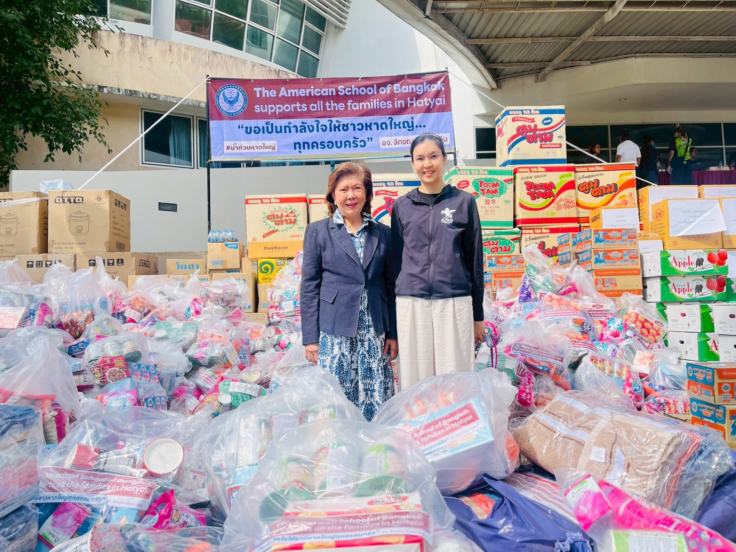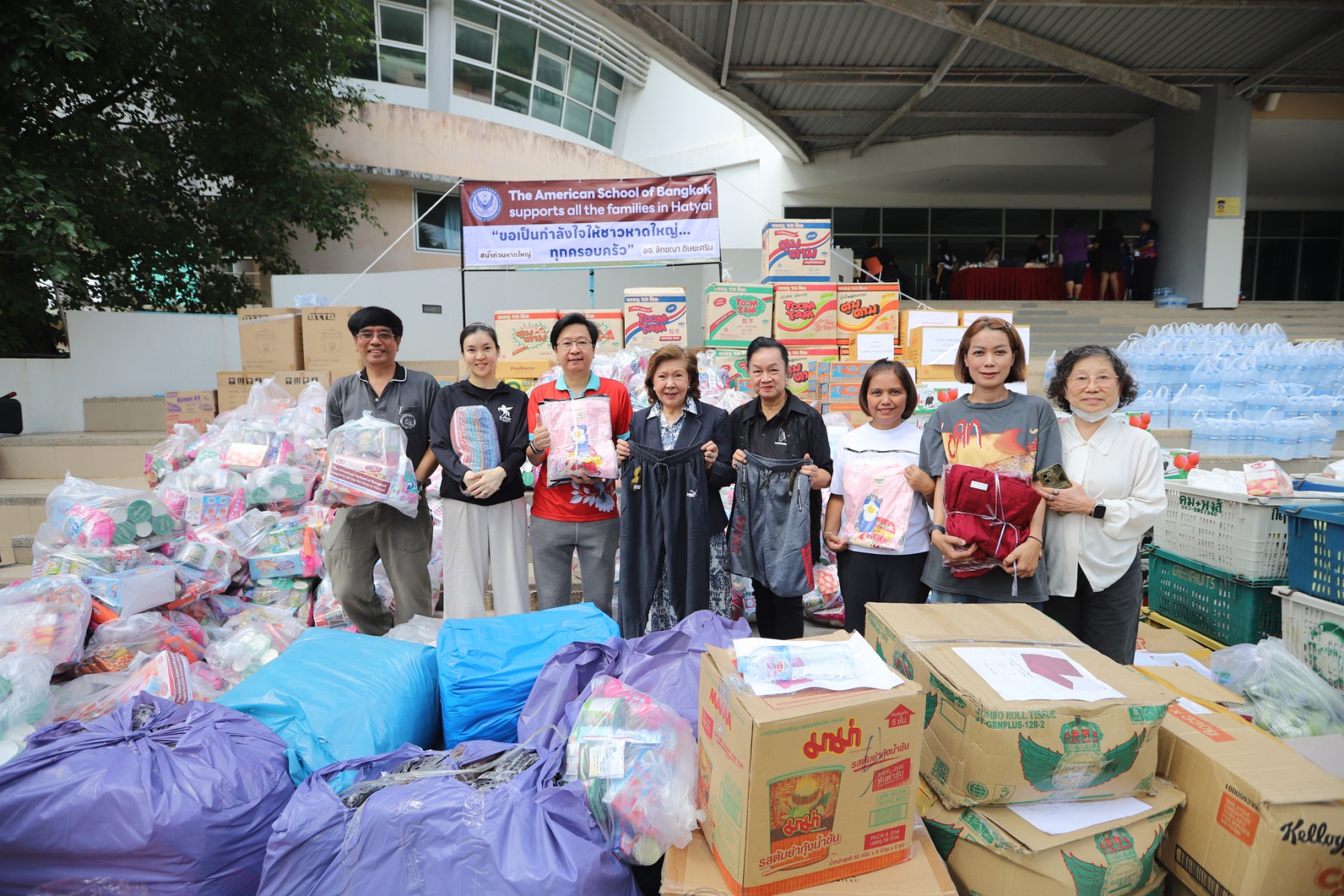 อาจารย์ลักขณา ดิษยะศริน พร้อมด้วยผู้ปกครอง นักเรียน ครู และเจ้าหน้าที่ โรงเรียนนานาชาติ The American School of Bangkok ได้ร่วมกันบริจาคสิ่งของ เพื่อช่วยเหลือบุคลากรของมหาวิทยาลัยหาดใหญ่ที่ได้รับผลกระทบ และลงพื้นที่เพื่อให้ความช่วยเหลือแก่ประชาชนที่ได้รับผลกระทบจากเหตุอุทกภัยในพื้นที่ชุมชนซอยบ่อนไก่ ชุมชนขนส่ง และชุมชนจันทร์วิโรจน์ และชุมชนคลอง ร.1 อำเภอหาดใหญ่ จังหวัดสงขลา