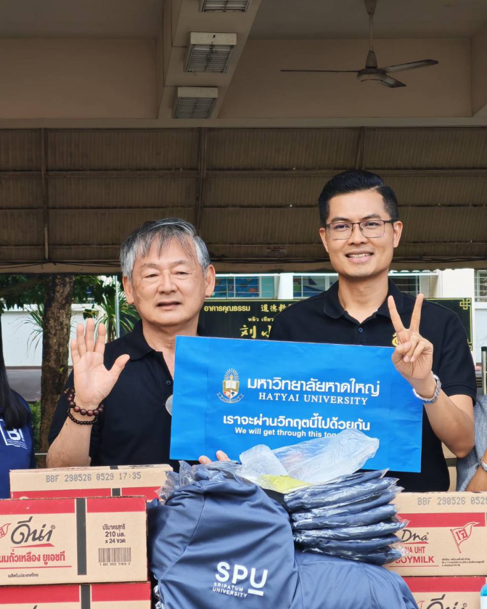มหาวิทยาลัยหาดใหญ่ เป็นตัวแทนเครือข่ายพันธมิตรทั้งภาครัฐและเอกชน นำสิ่งของอุปโภคบริโภคและอุปกรณ์จำเป็น ลงพื้นที่ส่งมอบเพื่อช่วยเหลือและฟื้นฟูโรงเรียนที่ได้รับผลกระทบจากอุทกภัย จำนวน 5 โรงเรียน โดยมีผู้บริหารและคณาจารย์จากคณะบริหารธุรกิจ คณะวิทยาศาสตร์และเทคโนโลยี คณะนิเทศศาสตร์ และคณะรัฐศาสตร์ เป็นตัวแทนมอบ