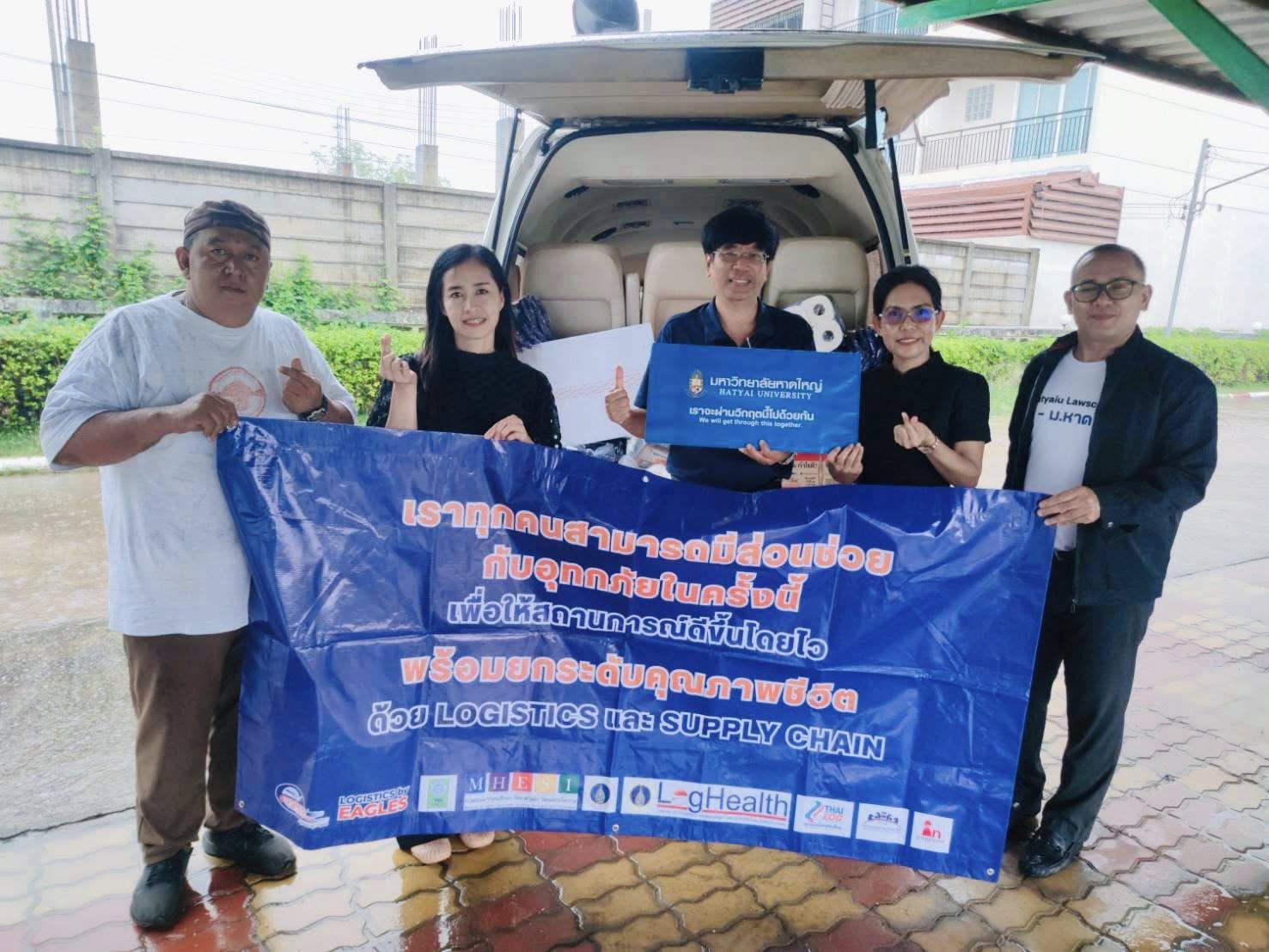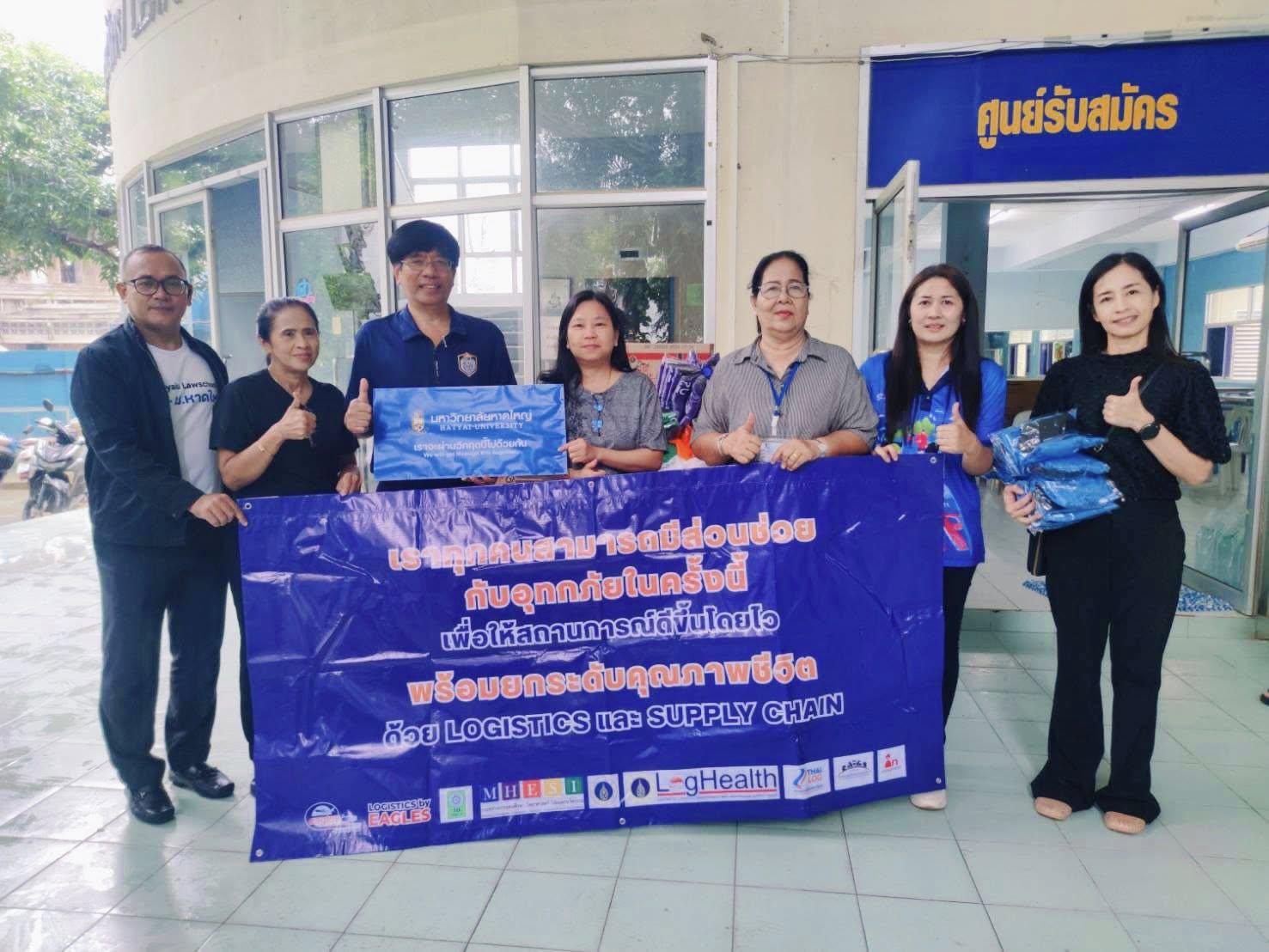 มหาวิทยาลัยหาดใหญ่ เป็นตัวแทนเครือข่ายพันธมิตรทั้งภาครัฐและเอกชน นำสิ่งของอุปโภคบริโภคและอุปกรณ์จำเป็น ลงพื้นที่ส่งมอบเพื่อช่วยเหลือและฟื้นฟูโรงเรียนที่ได้รับผลกระทบจากอุทกภัย จำนวน 5 โรงเรียน โดยมีผู้บริหารและคณาจารย์จากคณะบริหารธุรกิจ คณะวิทยาศาสตร์และเทคโนโลยี คณะนิเทศศาสตร์ และคณะรัฐศาสตร์ คณะนิติศาสตร์ สำนักทรัพยากรมนุษย์ และสำนักสื่อสารองค์กร เป็นตัวแทนมอบ