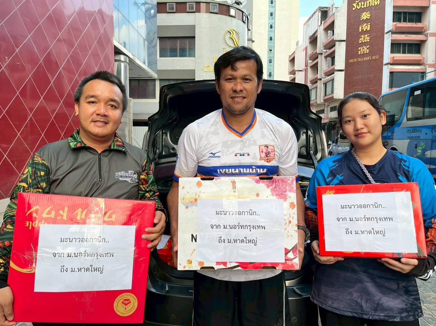 มหาวิทยาลัยหาดใหญ่ขอขอบพระคุณท่านอธิการบดี บุคลากรและนักศึกษา มหาวิทยาลัยนอร์ทกรุงเทพ ที่ร่วมสมทบทุนบริจาคเงิน และมะนาวออแกนิค ช่วยเหลือผู้ได้รับผลกระทบจากน้ำท่วม ผ่านการประสานงานของมหาวิทยาลัยหาดใหญ่ เพื่อบรรเทาความเดือดร้อนและส่งต่อกำลังใจให้กับประชาชนก้าวผ่านช่วงเวลายากลำบากไปด้วยกัน