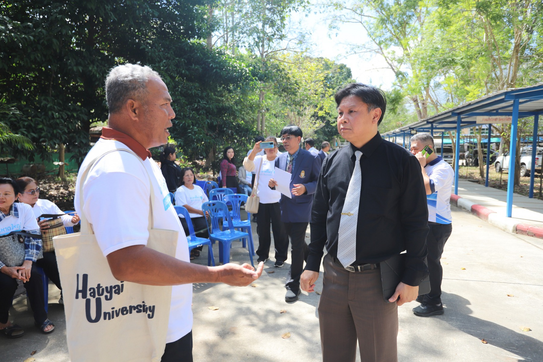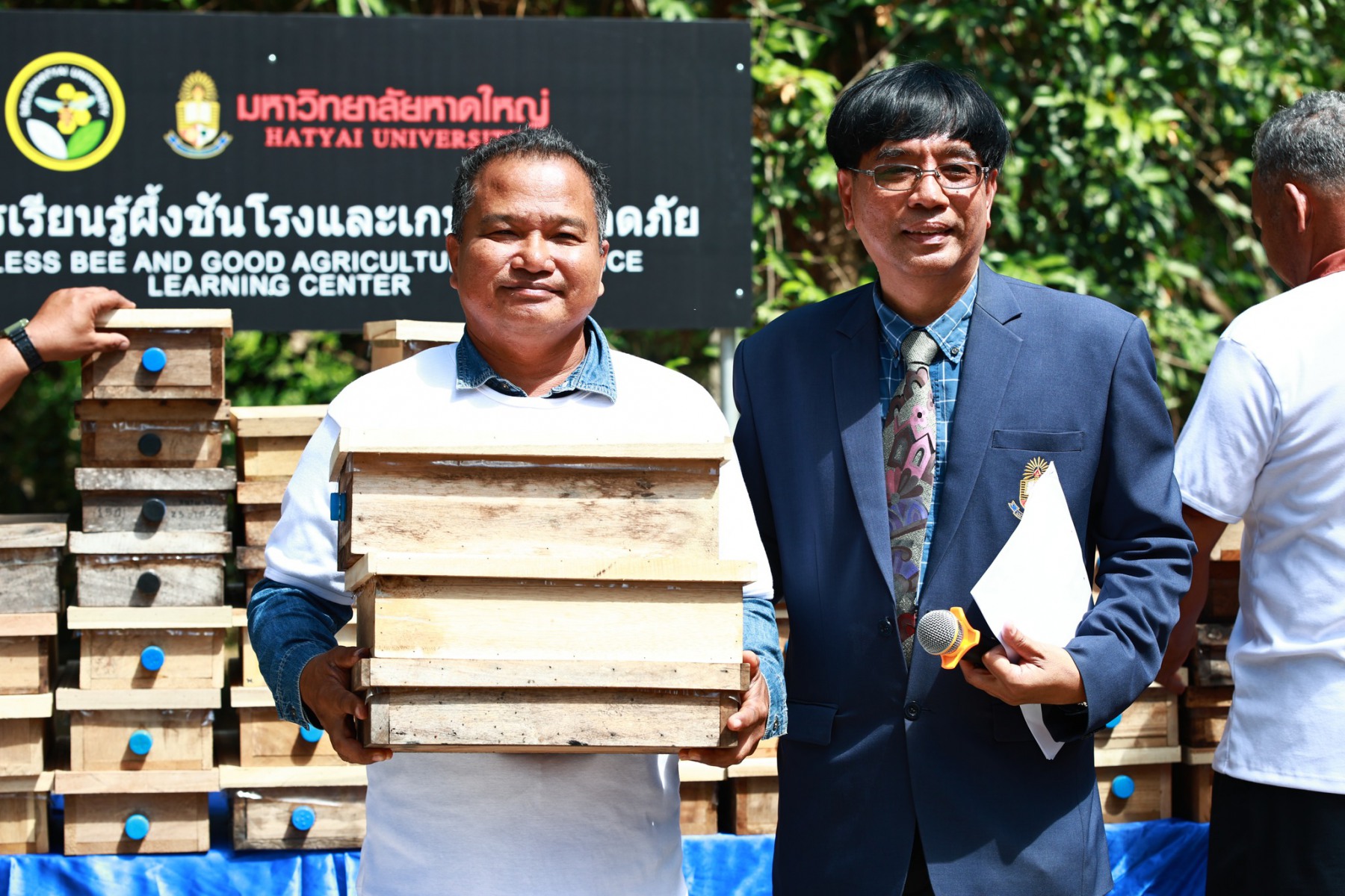 มหาวิทยาลัยหาดใหญ่ โดย อาจารย์ประณีต ดิษยะศริน ผู้ก่อตั้งและอุปนายกสภามหาวิทยาลัยหาดใหญ่ พร้อมด้วย ผู้ช่วยศาสตราจารย์ ดร.วิทวัส ดิษยะศริน สัตยารักษ์ อธิการบดี, รองศาสตราจารย์ ดร.ก้าน จันทร์พรหมมา ที่ปรึกษาอธิการบดีฝ่ายวิจัย และคณะผู้บริหาร โดยมี ผู้ช่วยศาสตราจารย์ ดร.นุกูล ชิ้นฟัก คณบดีคณะรัฐศาสตร์ เป็นผู้ดำเนินรายการ ได้จัดมอบรังชันโรงพร้อมแม่พันธุ์และกล่องรังเปล่า สำหรับใช้ในการแยกขยายพันธุ์ชันโรง ให้แก่เครือข่ายวิสาหกิจชุมชน “สงขลาเมืองผึ้งชันโรง” ผู้ได้รับผลกระทบจากเหตุอุทกภัย ณ ศูนย์การเรียนรู้ผึ้งชันโรงและเกษตรปลอดภัย โดยมีผู้แทนกลุ่มเกษตรกรที่ได้รับผลกระทบเข้าร่วมรับมอบ
