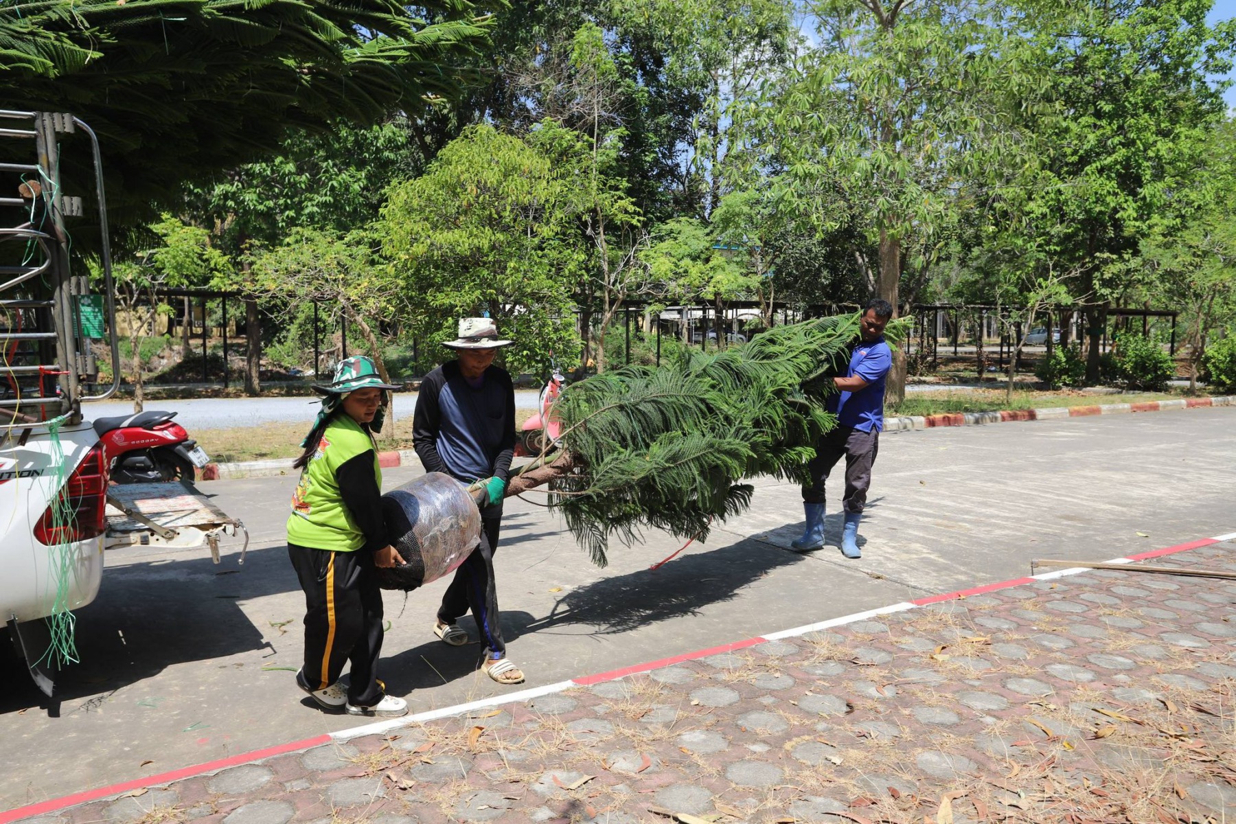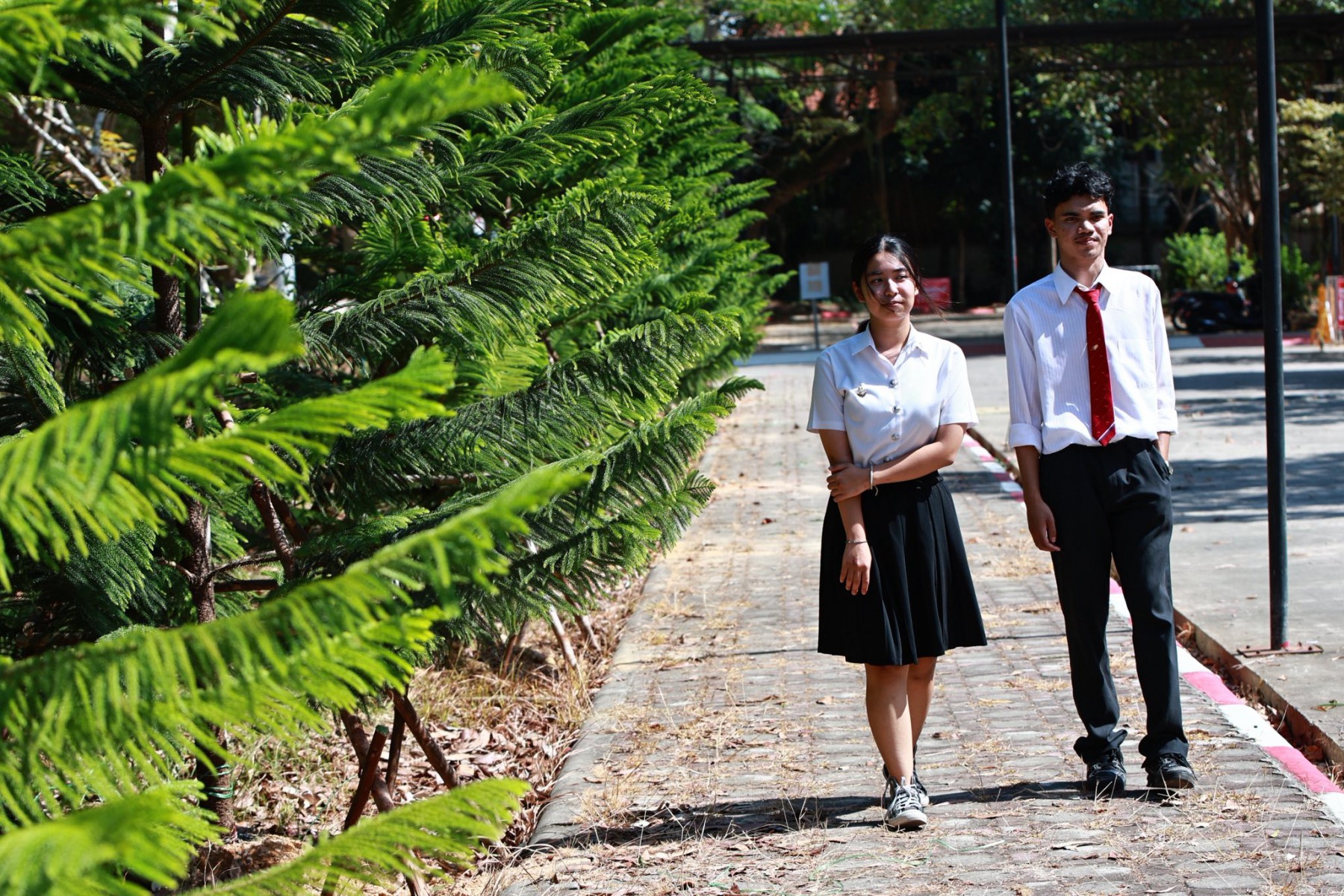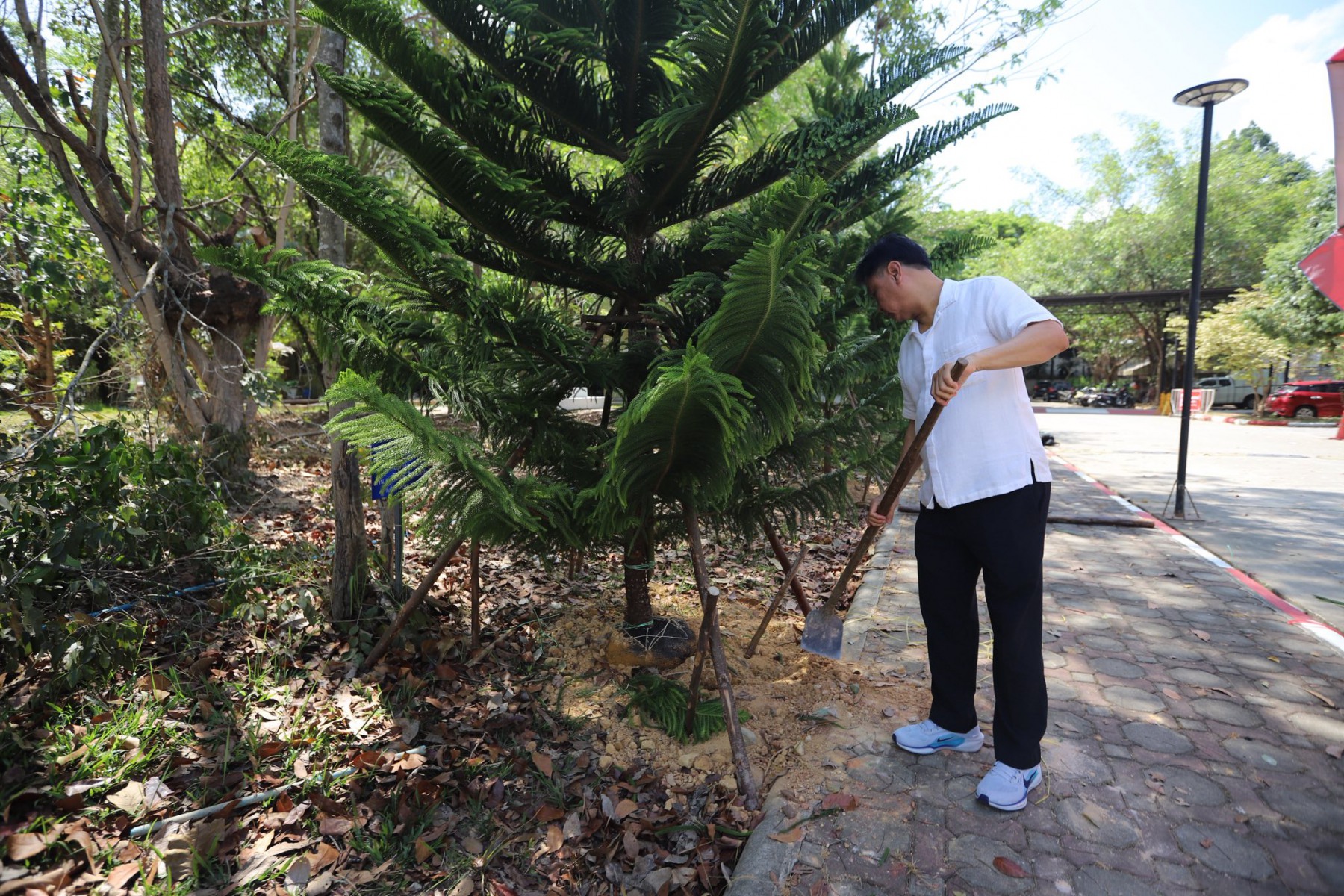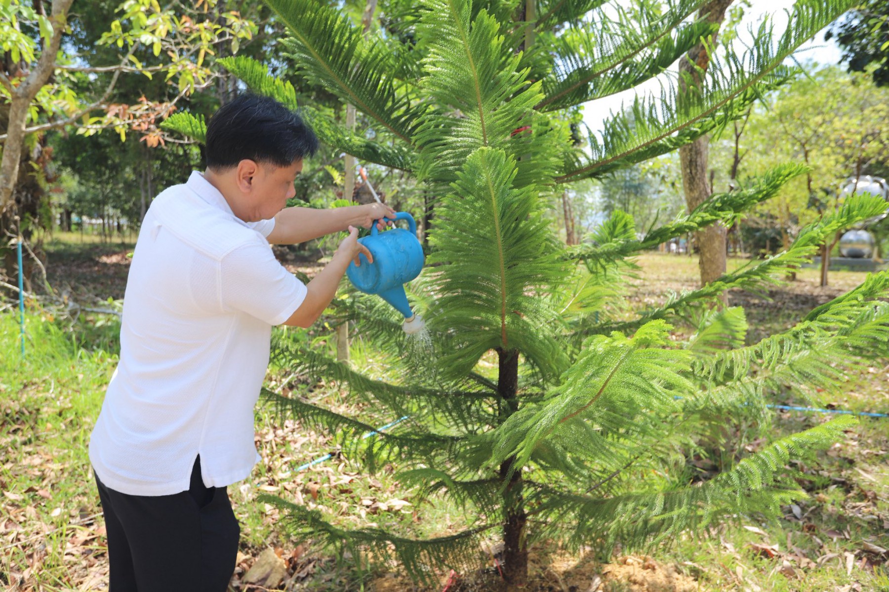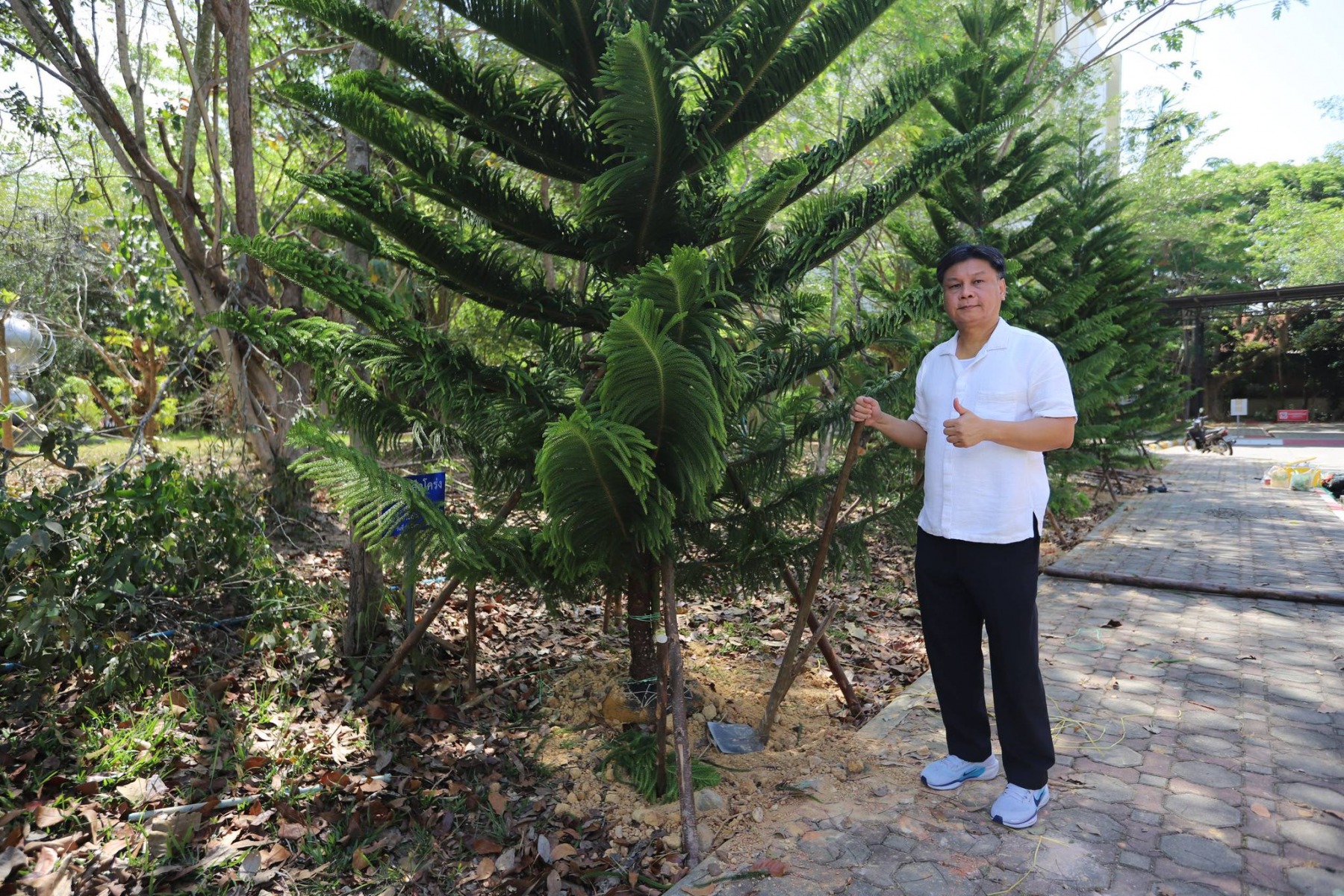 โดยนำ ต้นสนฉัตร (Norfolk Island Pine) เป็นไม้ยอดนิยมในไทยที่นิยมใช้เป็นต้นคริสต์มาสจริง เนื่องจากมีทรงพุ่มเป็นชั้นสวยงามคล้ายฉัตร ใบเรียงตัวหนาแน่น และทนสภาพอากาศได้ดี เป็นสัญลักษณ์แห่งความมั่นคง เติบโต และความร่มรื่น สะท้อนถึงวิสัยทัศน์ของมหาวิทยาลัยหาดใหญ่ ในการก้าวสู่การเป็นสถาบันการศึกษาระดับนานาชาติที่เปิดกว้างและยินดีต้อนรับทุกคน