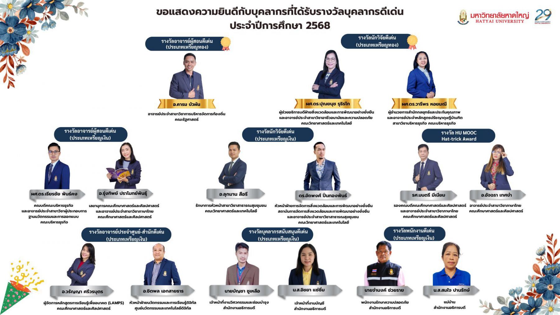 มหาวิทยาลัยหาดใหญ่ ขอแสดงความยินดีกับบุคลากรที่ได้รับรางวัล